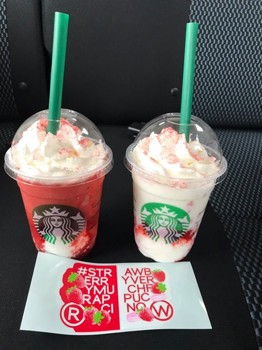 先日、スタバから出たイチゴのフラッペで癒されました☆